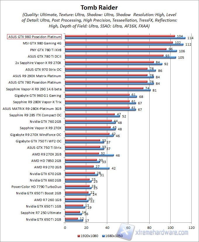 ASUS GTX 980 Poseidon Platinum, il ritorno del dissipatore ibrido - Tomb Raider